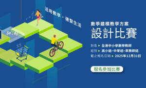 - 新資源影片 數學建模教學方案設計比賽 比賽發布暨研討會 精彩回顧 已上載,請老師前往「專家影片分享」頁面觀看。